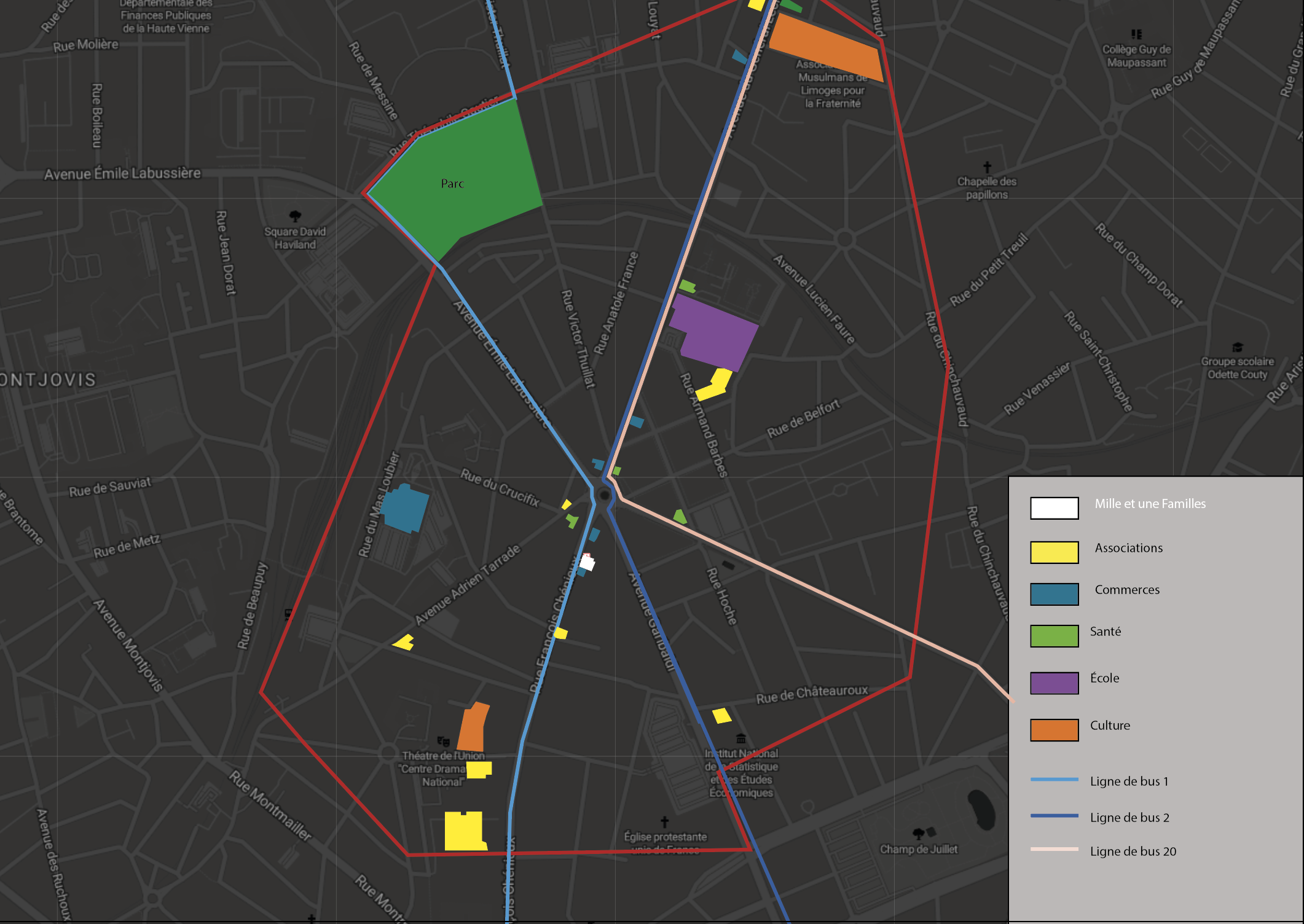 Dans le cadre du partenariat entre notre centre de formation Polaris et l'association Mille et une familles, nous avons eu l'opportunité de réaliser le projet d'aménagement de l'espace petite enfance de cette association. Pour cela, nous avons décidé de réaliser des recherches afin d'établir une base de données sur le territoire. Cette base de données a pour objectif de nous aider à mieux comprendre les enjeux et les demandes de ce territoire en particulier, mais également de voir si le projet "Mille et une familles" répond aux demandes du public.